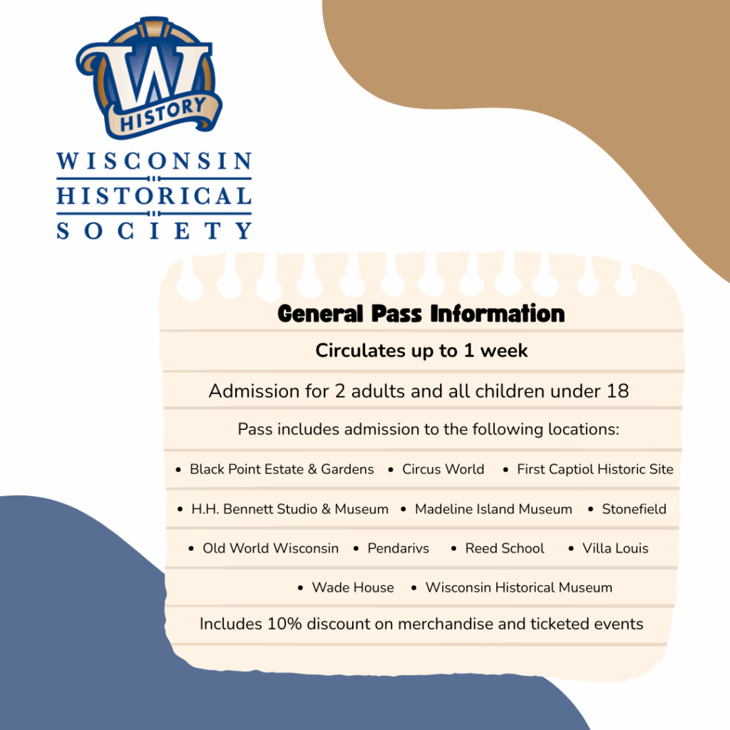 The following locations are included with use of the Wisconsin Historical Society Pass (for more information about each site, including special events that are happening at each, visit wisconsinhistory.org/sites)